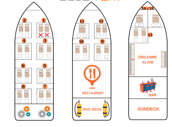 Hava ve seyir koşullarına bağlı olarak 6 gün toplam 20 - 22 dalış